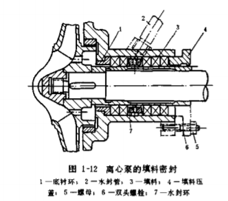 環(huán),環(huán)上開有若干小孔,水封環(huán)對(duì)準(zhǔn)水封管。水泵運(yùn)行時(shí),泵內(nèi)壓力較高的水,通過水封